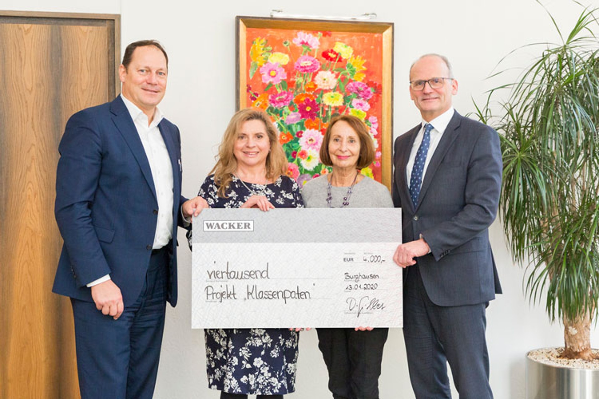 „Es freut uns, dass wir dieses Programm, bei dem es auf die langfristige Auslegung ankommt, erneut unterstützen können. Dies umso mehr, als auch einige WACKER-Mitarbeiter als Klassenpaten aktiv sind und damit ihren persönlichen Beitrag leisten. Letztlich hilft das Projekt bereits im frühen Kindesalter dabei, das Fundament für gleiche Bildungschancen zu legen,“ ergänzt WACKER-Werkleiter Dr. Dieter Gilles, bei der symbolischen Scheckübergabe an die stellvertretende Vorsitzende Monika Besier und Projektbetreuerin Anita Allmannsberger.