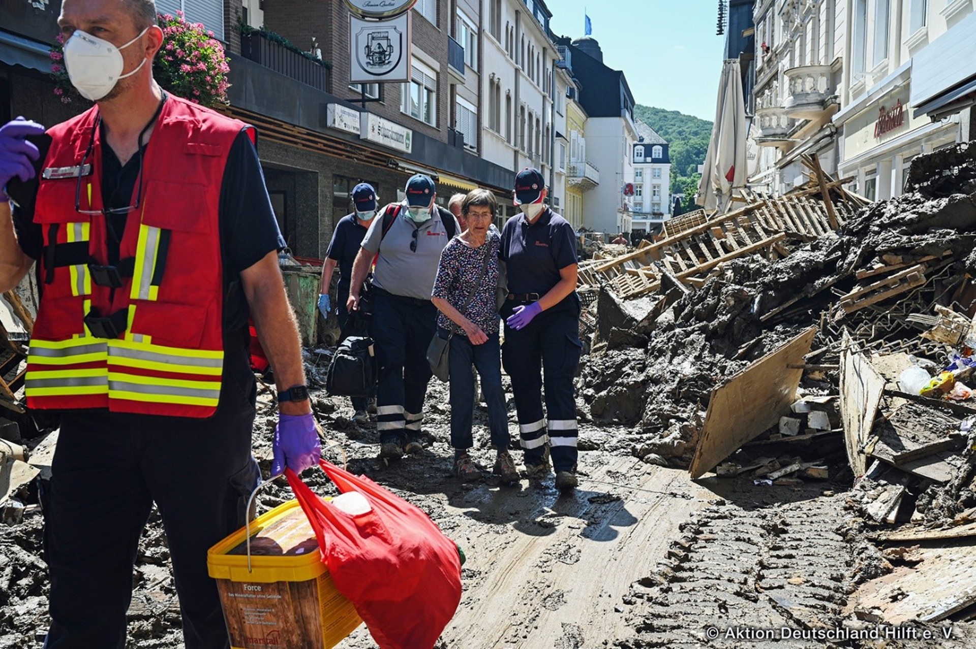 Das Aktionsbündnis leistet technische Unterstützung, um Straßen wieder passierbar und Orte zugänglich zu machen. Wo Arztpraxen und Apotheken zerstört wurden, stellt das Bündnis die medizinische Versorgung sicher. Die Helfer räumen mit schwerem Gerät auf, sichern gefährliche Bereiche ab und stellen Hochdruckreiniger und Bautrockner zur Verfügung. Sie bieten psychosoziale Unterstützung und Hilfe bei der Beantragung von Versicherungsleistungen.