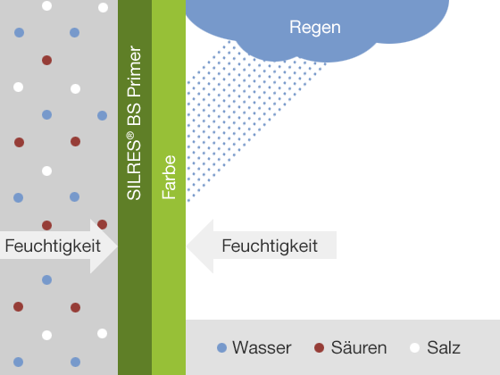 Grundierungen sind für die langfristige Stabilität mehrlagiger Baubeschichtungen unverzichtbar. WACKER bietet Grundierungslösungen aus der Siliconchemie und der organischen Chemie an, die zur Hydrophobierung bzw. Verfestigung des Substrats oder als Haftvermittler zwischen Substrat und Beschichtung dienen.