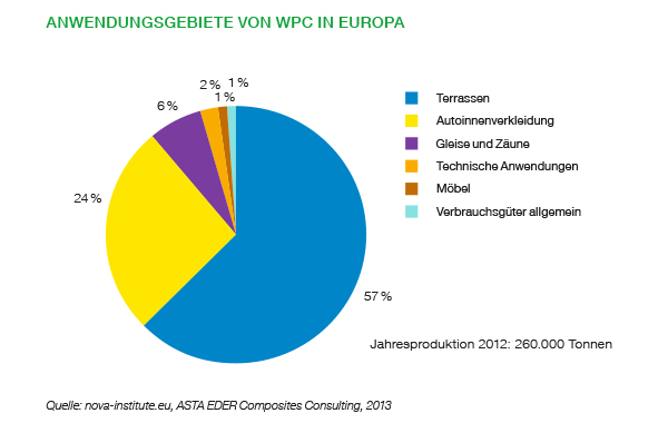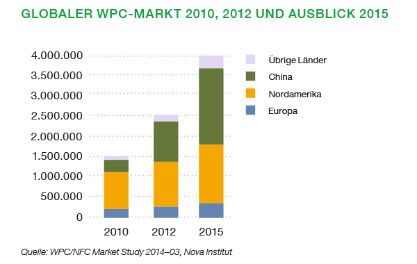 Wood Plastic Composites lassen sich vielseitigst einsetzen – zum Spektrum der denkbaren Produkte gehören neben Terrassendielen auch Fassadenverkleidungen und Zäune, Fenster und Türen, Möbel, Autoinnenraumteile oder technische Bauteile. Seit einigen Jahren boomt der Markt für diese Composite-Werkstoffe und wächst jährlich mit einer Steigerungsrate von etwa 20 Prozent. In China, neben den USA der weltgrößte WPC-Produzent, sind es sogar 25 Prozent – der stärkste Wachstumsmarkt.