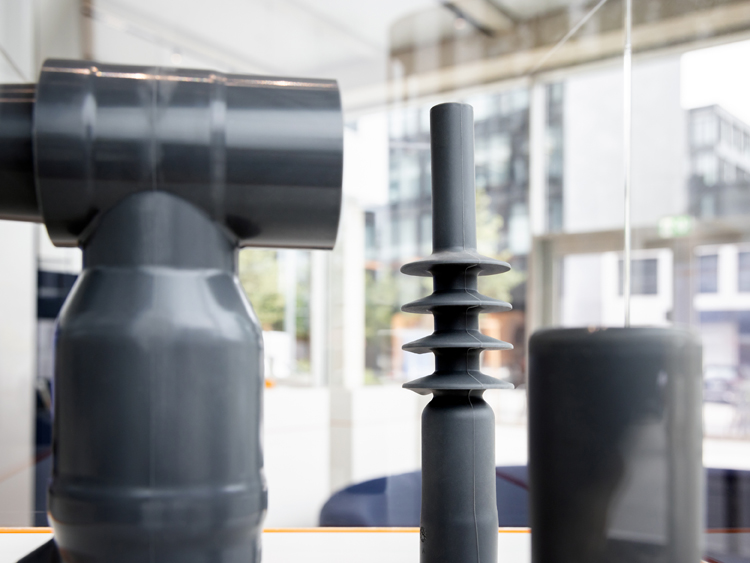 Wer sich für das Thema Energie begeistert, kann im WACKER Showroom zum Beispiel einen Verbundhohlisolator mit POWERSIL® Siliconkautschuk ganz aus der Nähe bewundern. Isolatoren wie dieser machen den Netzausbau für die Energiewende erst möglich. Direkt daneben wartet das Rotorblatt einer Windkraftanlage – exakt verklebt dank Klebstoff mit unserer pyrogenen Kieselsäure HDK®.