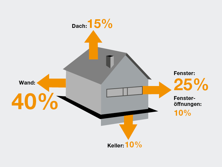 In einem typischen Einfamilienhaus in Deutschland gehen 40 % der Wärme über die Außenwände verloren. Abhilfe schafft eine effiziente Wärmedämmung.