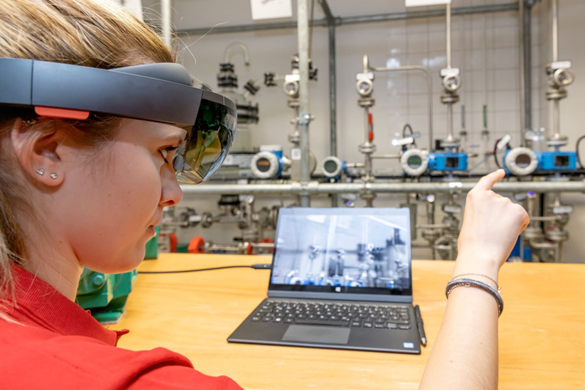 Eine besondere Attraktion beim Berufsinfotag war die Hololens, mit der sich die Besucher durch die virtuelle Umgebung im Lehrtechnikum bewegen konnten.