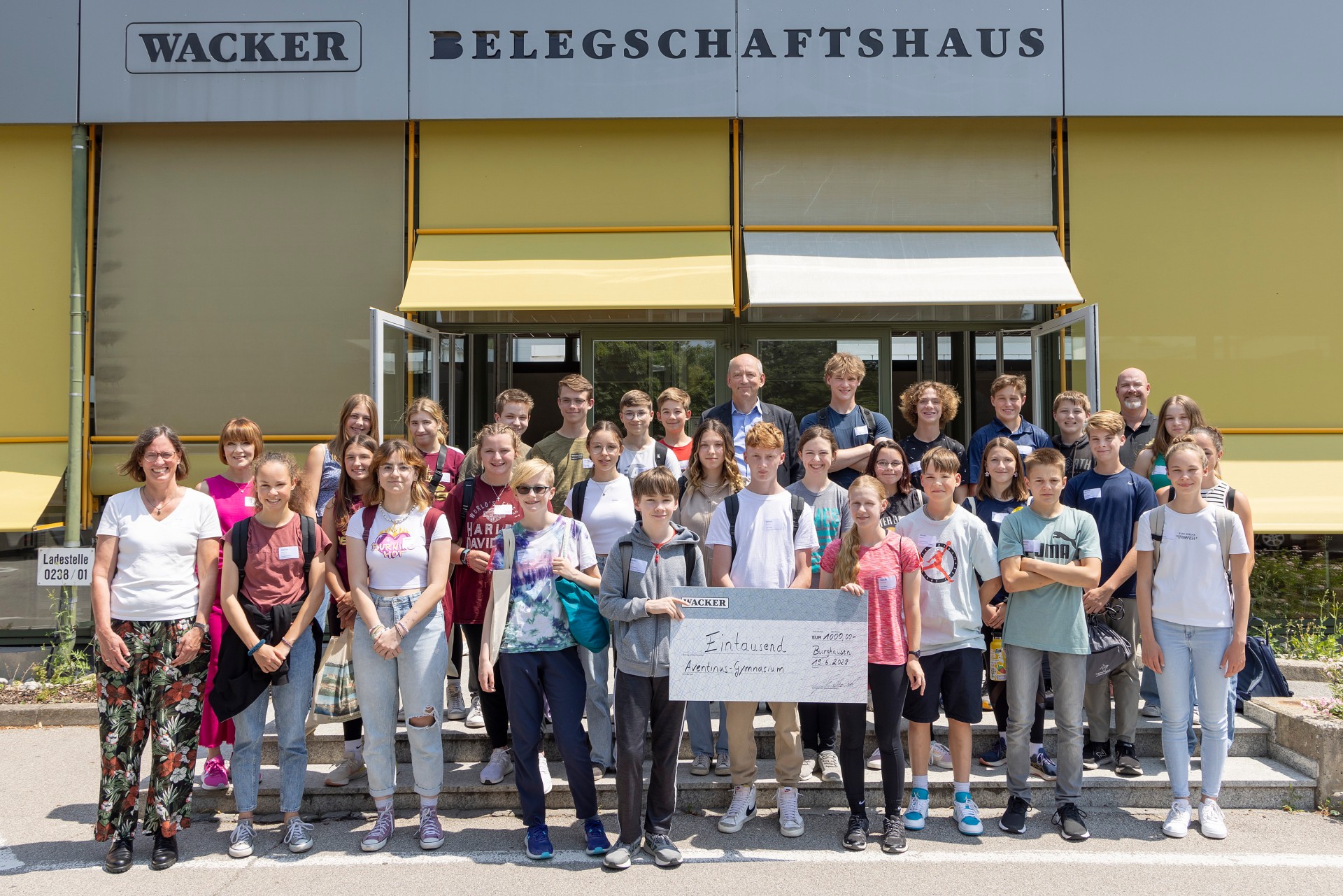 Angesichts der Verbundenheit zum Unternehmen fördert WACKER den Austausch auch finanziell. So überreichte Werkleiter Dr. Peter von Zumbusch am Montag einen Scheck über 1000 Euro an Austausch-Beauftragte Esther Biber vom AVG – verbunden mit der Bitte, den Schüleraustausch auch künftig weiterzuführen.