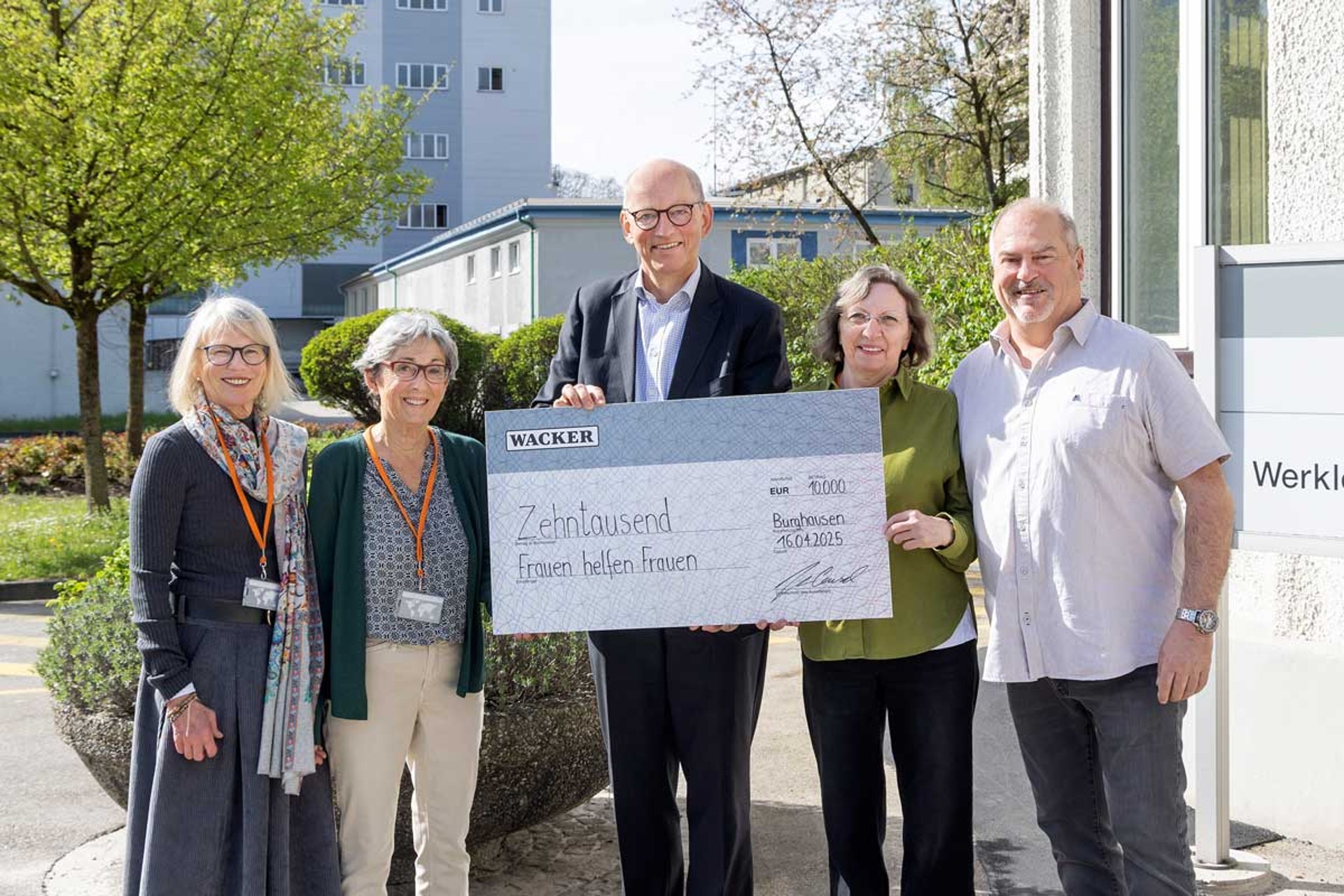 Bereits zum dritten Mal in Folge hat die WACKER-Werkkapelle bei ihrem Frühjahrskonzert einen Spendenrekord erzielt. 10.000 Euro konnten die Verantwortlichen an den Burghauser Verein “Frauen helfen Frauen” jetzt überreichen.