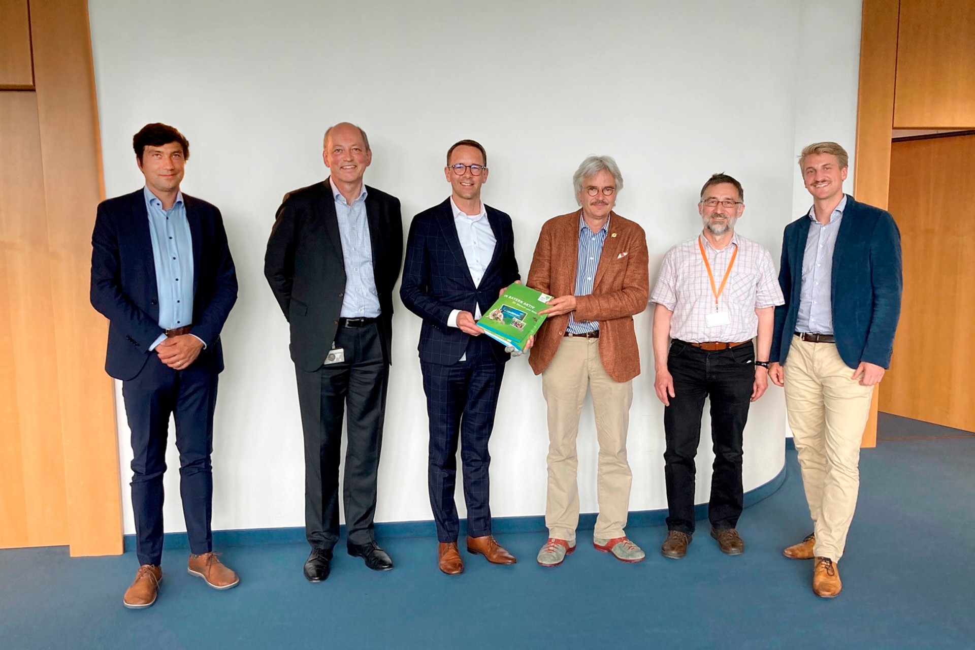 Beim gemeinsamen Austausch in München: BN-Landesvorsitzender Richard Mergner (3.v.r.) zusammen mit WACKER-Vorstandsvorsitzendem Dr. Christian Hartel (3.v.l.) sowie (v.l.) Landesbeauftragtem Martin Geilhufe, WACKER-Werkleiter Dr. Peter von Zumbusch, BN-Kreisvorsitzendem Gerhard Merches und BN-Energie- und Klimareferent Michael Remy.