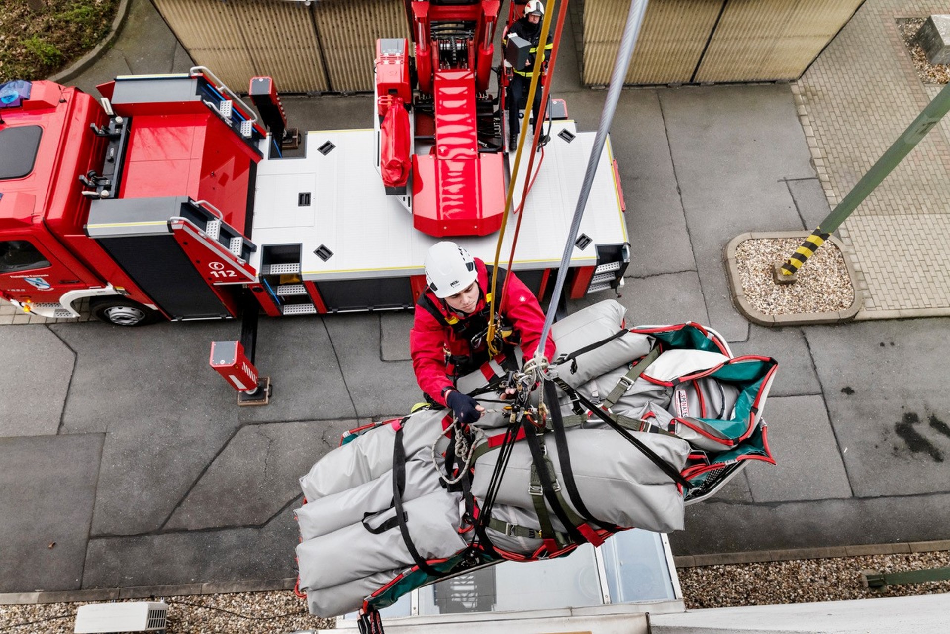 Die Rettung eines 300 Kilogramm schweren Dummys durch ein Fenster