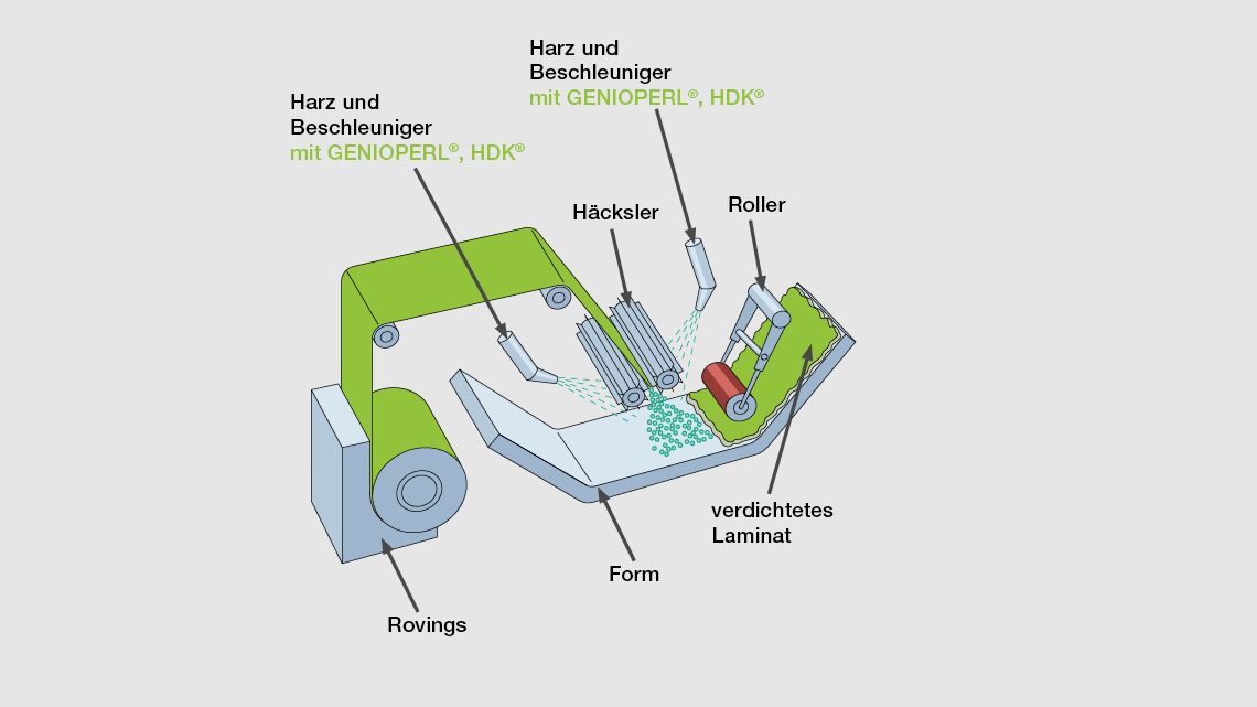 Composites – auch Faserverbundwerkstoffe genannt – sind spezielle Kunststoffe, bei denen Polymere mit verstärkenden Fasern aus Kohlenstoff, Glas oder Mineralien kombiniert werden. Zur Produktion von duroplastischen Composites werden hauptsächlich ungesättigte Polyesterharze (UP), Vinylesterharze (VE), Phenolharze, Epoxyharze (EP), Melaminharze (MF) und Polyurethane (PU) eingesetzt.