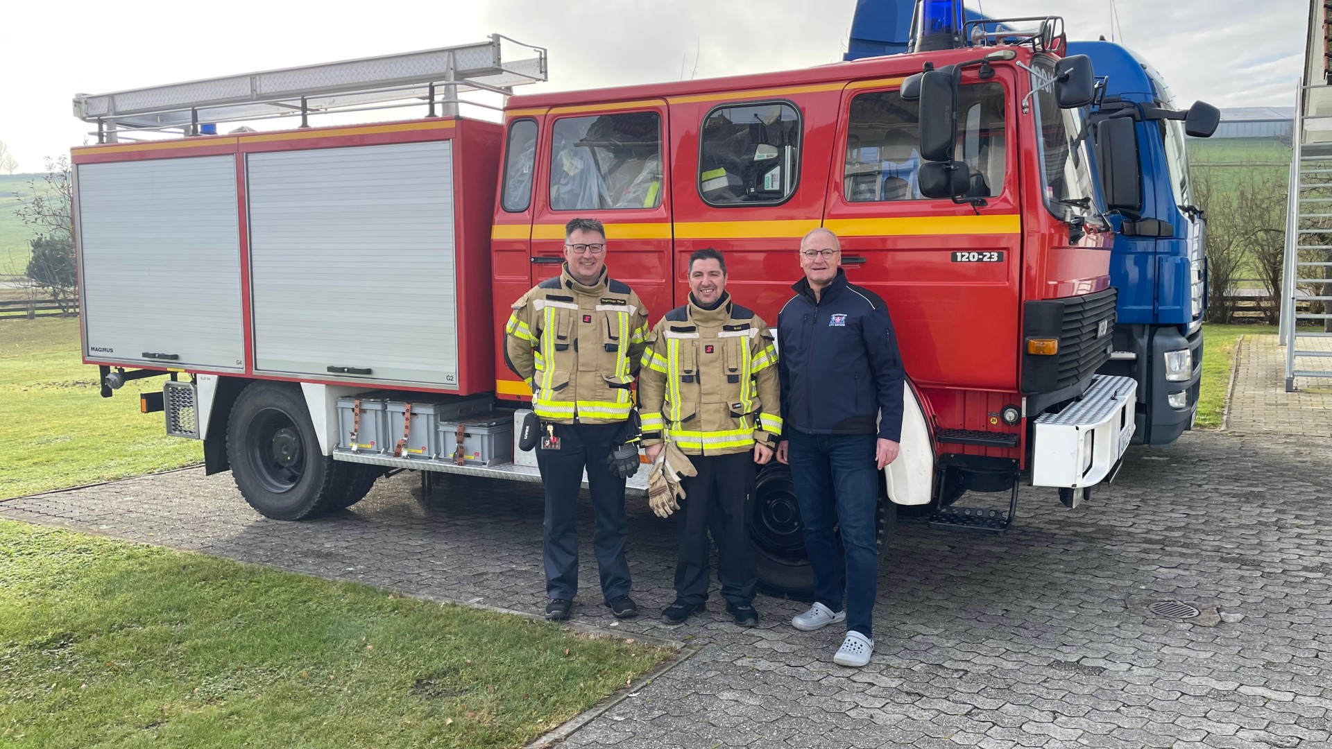 Oliver Rogozarski und Vincenzo Bucci von der Werkfeuerwehr brachten das immer noch gut gerüstete Fahrzeug vor kurzem nach München, wo Jürgen Weiß vom Landesfeuerwehrverband es entgegennahm. Zeitnah soll das TLF jetzt nach Odessa überführt werden. Die Sachspende schafft zugleich Platz bei der Werkfeuerwehr und reduziert langfristig den Aufwand für Wartung und Betrieb.