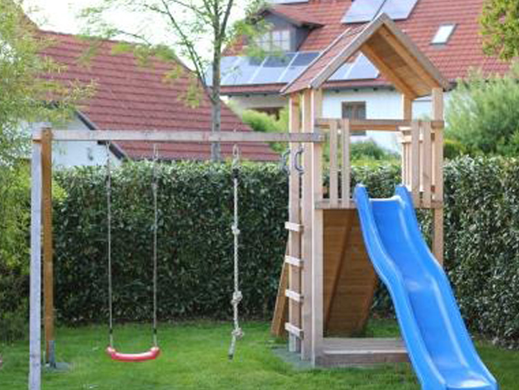Nach der Behandlung im Mischungsverhältnis 1:9 war nach zwei Monaten ein sehr ausgeprägter Abperleffekt zu erkennen. Herr U. trug die Verdünnung mit einer Gartenspritze auf: „Das hat gut funktioniert. Großflächig einsprühen, dann mit dem Pinsel gleichmäßig verteilen. In zwei Stunden war ich fertig.“ Inzwischen sind anderthalb Jahre vergangen und auch Schaukel und Kinderspielhaus sind inzwischen behandelt. Ein Liter SILRES® WH reichte für die Fassade (80–100 m2) und die Spielgeräte aus. Das Fazit bisher: „Ich bin voll und ganz zufrieden mit SILRES® WH. Die Fassade ist gleichmäßig grau, es gibt keine Flecken. Ich kann das Produkt guten Gewissens empfehlen.“
