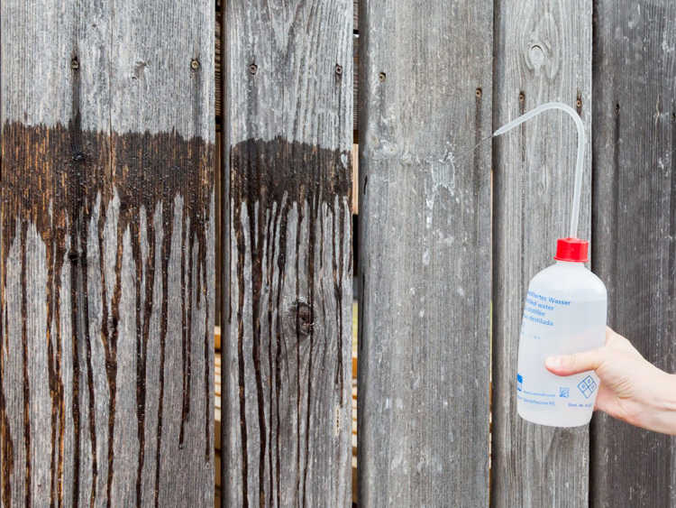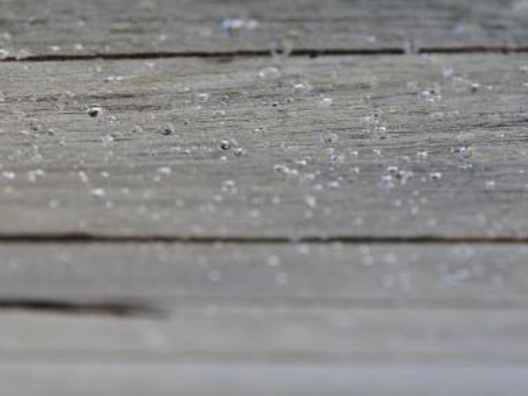 Dank des witterungsstabilen molekularen Siliconharznetzwerks perlt Wasser von der Holzoberfläche einfach ab.