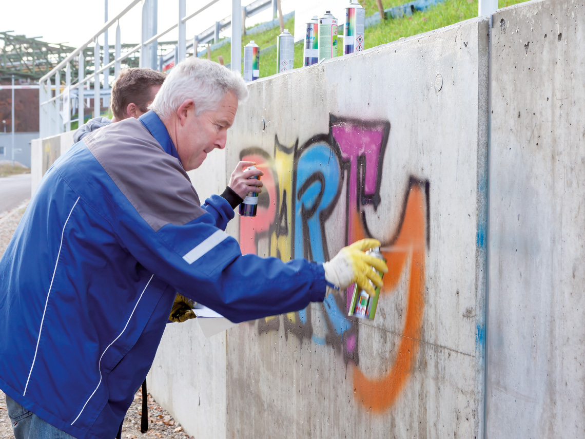 Sie schützen nicht nur die Oberflächen, sondern sie erleichtern auch das Entfernen von Farbe und Klebstoffen: Permanente Anti-Graffiti-Beschichtungen. Verantwortlich für diese Eigenschaften ist der flüssige, einkomponentige, raumtemperaturvernetzende Siliconkautschuk SILRES® BS 710. SILRES® BS 710 lässt sich in einem Temperaturfenster zwischen 5 °C und 30 °C als transparente oder pigmentierte Beschichtung einfach auftragen oder aufsprühen. Bei Kontakt mit Luftfeuchtigkeit vernetzt der Siliconkautschuk von außen nach innen: Nach etwa 4 Stunden hat sich ein starker, permanent haftender Siliconfilm ausgebildet.