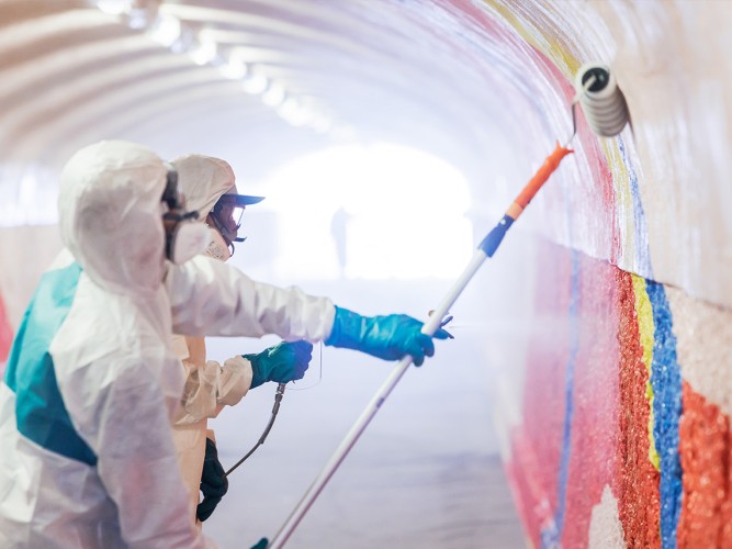 Wir haben die Lösung: SILRES® BS 710 ermöglicht permanente Anti-Graffiti-Beschichtungen, die diffusionsoffen sind und von denen Graffitis und Poster einfach mit Wasser entfernt werden können. Die Beschichtung kann transparent oder pigmentiert erfolgen.