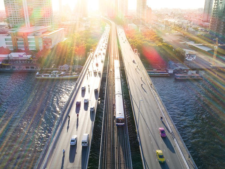 Ebenso wie in der Automobilindustrie sind auch im Schienenverkehr sowie in der Luft- und Raumfahrt eine sehr hohe Ausfallsicherheit und Zuverlässigkeit aller Bauteile unabdingbar. Aufgrund ihrer einzigartigen Eigenschaftsprofile ermöglichen WACKER Silicone im Flug- und Bahnverkehr einen reibungsfreien Dauerbetrieb – selbst unter widrigsten Bedingungen.