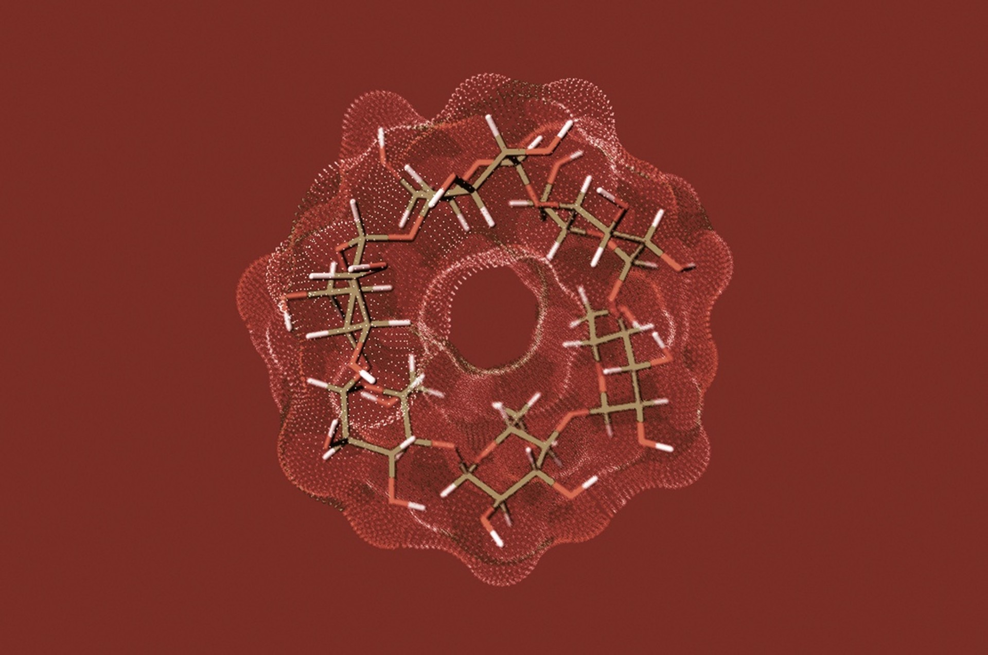 Cyclodextrine sind in der Natur vorkommende Abbauprodukte von Stärke. Sie bestehen aus mehreren, zu einem Ring verknüpften Glucose-Molekülen. Nach der Anzahl der Glucose-Einheiten – und damit auch nach der Ringgröße – unterscheidet man α-, β- und γ-Cyclodextrin. (Foto: Wacker Chemie AG)
