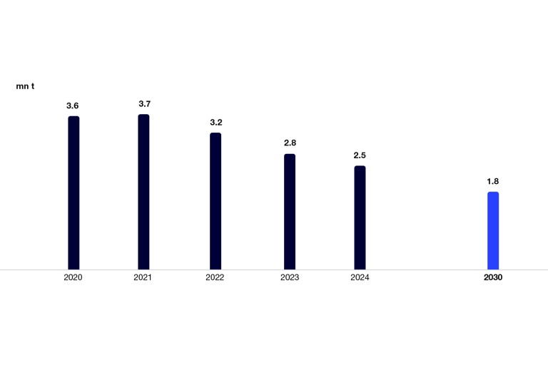 Emissions from purchased raw materials are a particular challenge, as we are greatly dependent on the results of the other teams as well. WACKER’s CO2 emissions from the purchase of raw materials (Scope 3) fell continuously between 2020 and 2023, but they increased last year. “We are pursuing the right tactics here over the long term. 2024 was not representative due to the lower purchase volume,” explains Gigler in his capacity as coach.