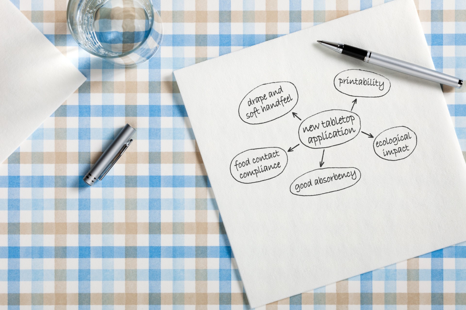 Tabletop nonwovens are innovative materials designed for various dining and hospitality settings, offering a range of functional and aesthetic benefits. Wacker’s VINNAPAS® dispersions are engineered to provide a pleasant, soft hand feel, closely mimicking cotton's texture and comfort, enhancing the dining experience. Their excellent printability allows for vibrant and customizable designs, making them ideal for branding and thematic decor. Depending on the application, VINNAPAS® binders can be manufactured with hydrophilic or hydrophobic properties, ensuring versatility in moisture management. They are compliant with food-contact regulations, ensuring safety and hygiene in environments where food is served. Additionally, VINNAPAS® binders offer water resistance, protecting surfaces from spills and stains, while their drapability ensures the nonwoven fabric hangs elegantly over tables, maintaining a neat and attractive appearance.