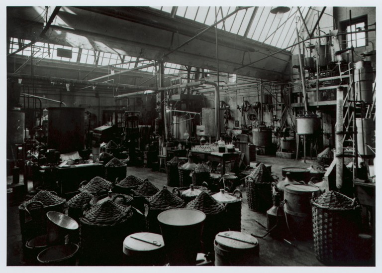 Bottles of acetic acid in an experimental laboratory at the Consortium, WACKER’s central research facility in Munich, around 1930. In those days, vinyl acetate monomer was still made by reacting acetic acid with acetylene.