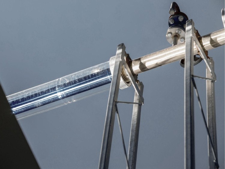 In the solar field of CSP systems, HELISOL® circulates through receivers – steel tubes enclosed by vacuum-insulated glass tubes to prevent heat loss.
