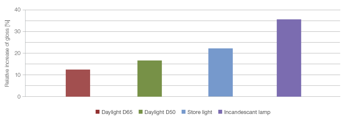 BELSIL® SPR 45 VP provides shine and long-term protection. The graph shows the comparison of a lipstick with and without silicone resin.