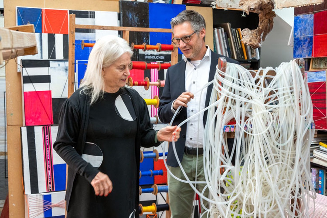 The heart-lung machine worked away quietly, while the doctors concentrated on performing the heart surgery step by step. That’s when Monika Fioreschy noticed the fine silicone blood transfusion tubes. “That was the moment in which I decided to use silicone tubing for weaving,” she says. The artist, who is now 77, witnessed a heart surgery in 1992 in Salzburg. At the time, she was looking for a new approach, because she did not want to settle for the traditional art of weaving, with which she had already caused quite a stir around the world as a weaving artist. “Silicone tubing has had a lasting impact on my work,” emphasizes Fioreschy.
