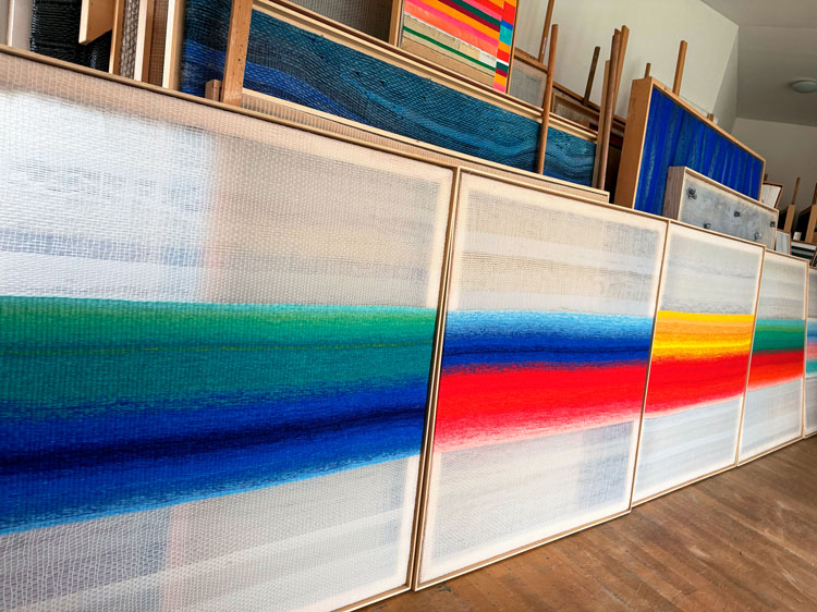 Since 1993, Fioreschy has been using silicone tubing for her weaving work instead of traditional woolen thread and has developed the new art form “transfusion silicones” and “Sil-Icons.” For the former, the artist injects dye, blood or chlorophyll into the woven structure with a needle. In the case of the Sil-Icons, Fioreschy partly paints the woven surface. She thus steps away from pure textile art and gives her woven pieces additional substance. According to art critics, “Fioreschy revolutionizes our understanding of the modern tapestry.” The artist has been using unusual materials to set benchmarks with her work for decades.