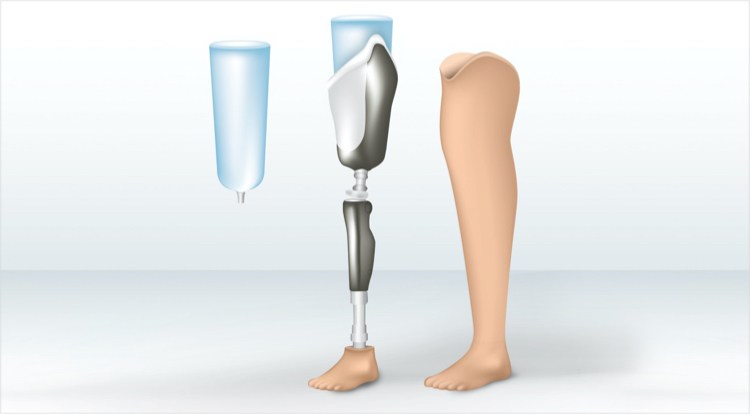 Following an amputation, leg prostheses can help patients regain their mobility and restore their appearance. Acting as an interface between the residual limb and the prosthesis, liners made from WACKER silicone elastomers are soft and flexible, absorb vibrations and thus maximize comfort while remaining securely in place. That protects patients from pain caused by pressure and friction, reduces swelling and alleviates phantom pain.