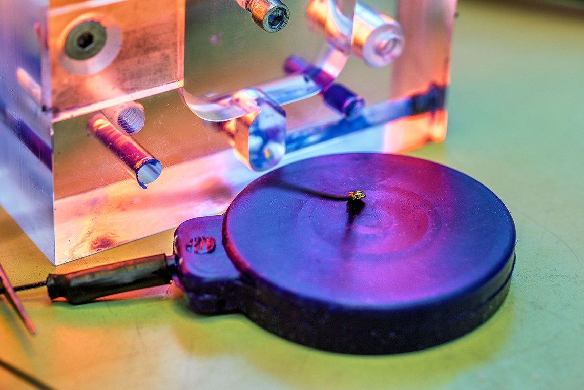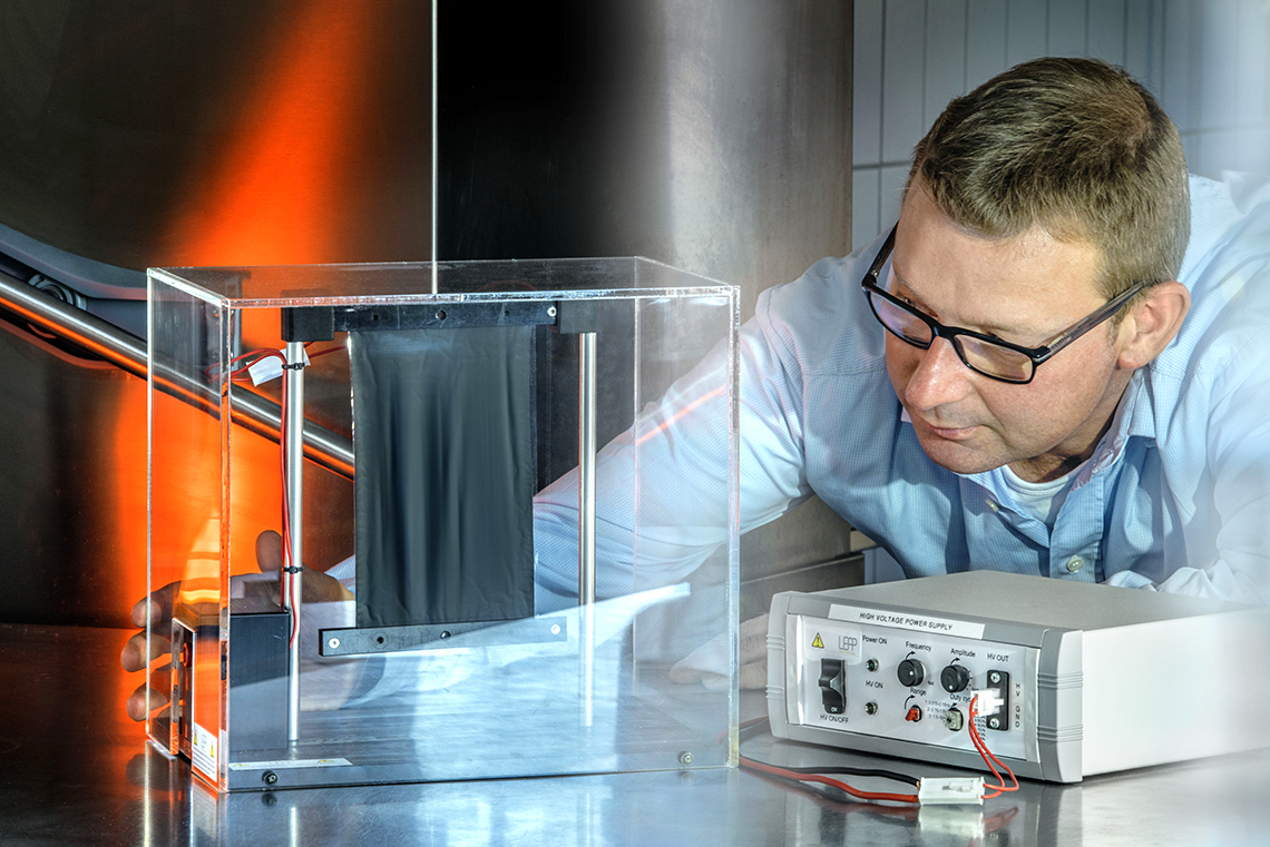 Electroactive elastomers made by LEAP Technology undergo a test: a power source is attached to the coated silicone film.
