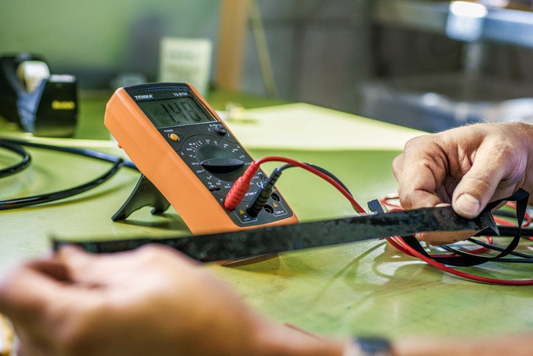 In building their components, lab experts at LEAP Technology use both silicone films and a further WACKER silicone rubber that has been modified for conductivity. LEAP team members then hook up the unit to electrical wiring and a textile mechanical attachment. “The last step is to embed this entire unit within another WACKER silicone to protect it from electrical interference and to obtain the desired surface,” Sarban explains. Before the components are sent on to customers, they are tested and calibrated at the Leap Technology laboratories.
