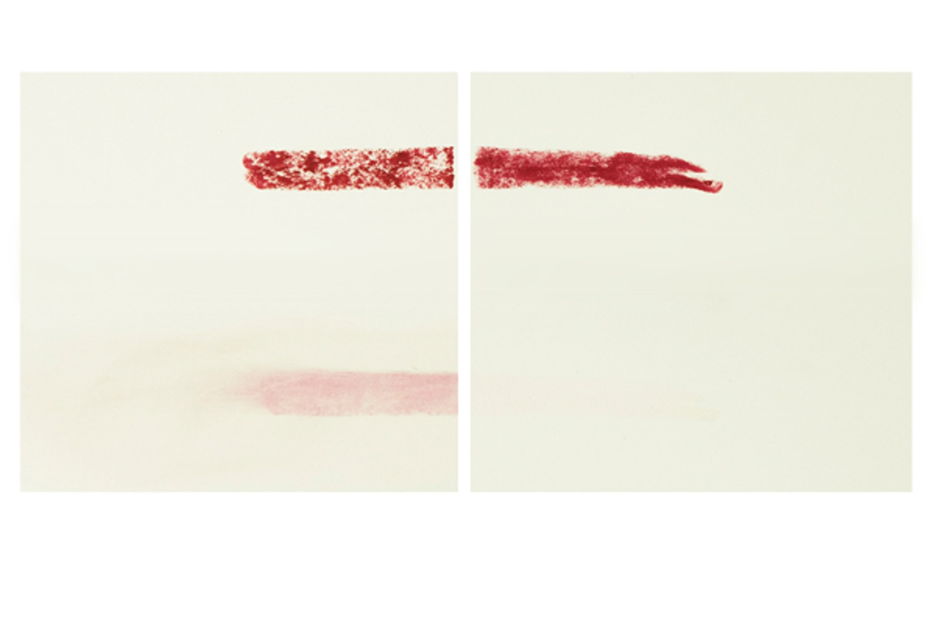 The new PRIMIS® SAF 9000 dispersion ensures permanently clean walls, as can be seen by a direct comparison – while the left-hand surface was painted with a conventional interior paint, the right-hand surface has been treated with a paint containing PRIMIS® SAF 9000. Even lipstick can be completely removed from the treated wall with a wet cloth (right bottom), while the untreated surface still shows visible stains after cleaning (left bottom)