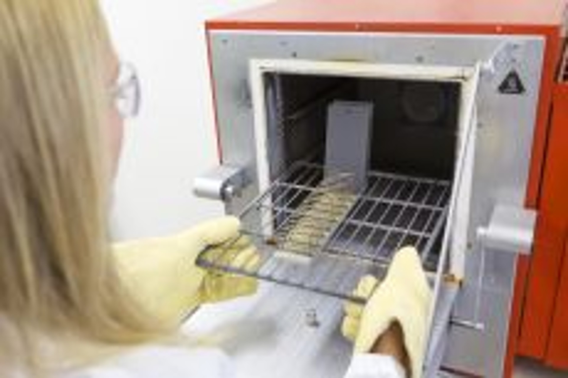 The thermal resistance of the new SILRES® REN70-M binder is tested in the WACKER lab by coating steel plates with a paint containing the binder and heating them up to 650 °C