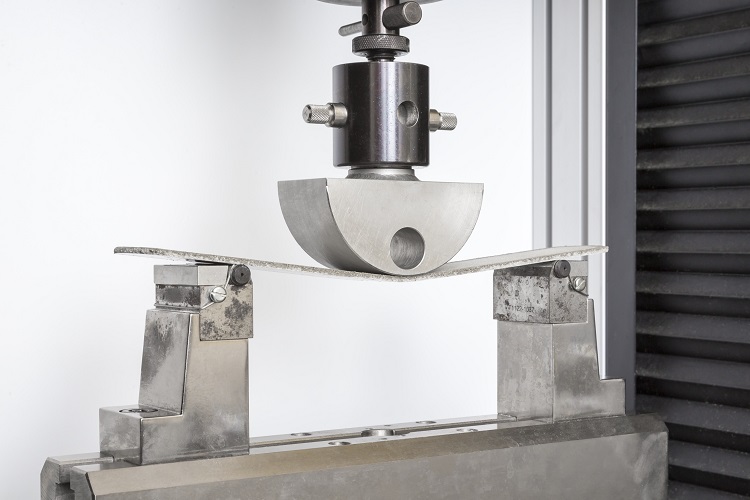 The deformability of the tile adhesive is tested to EN 12004 in WACKER's applications technology laboratory.