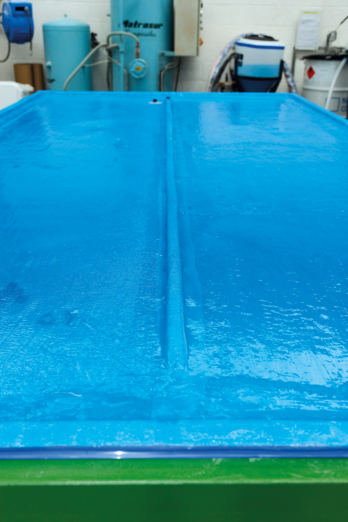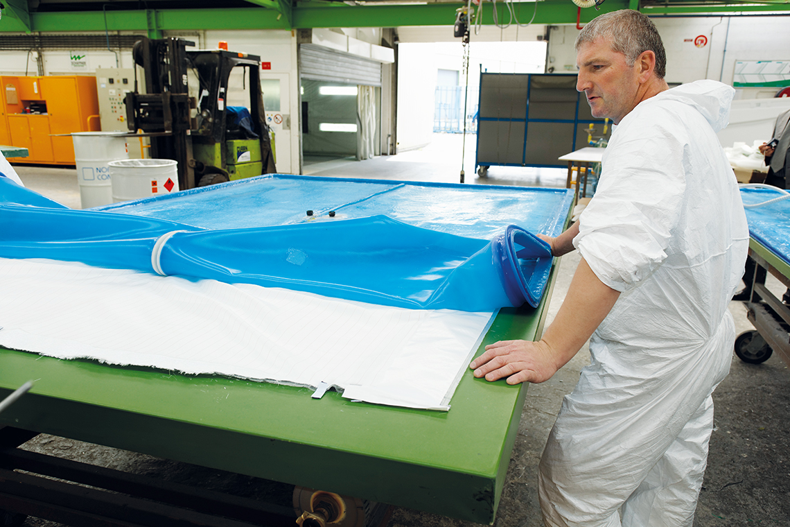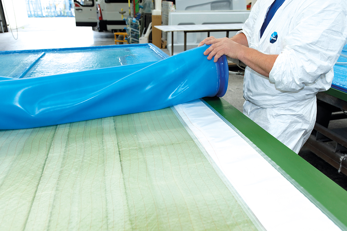 自20世纪70年代起,Durisotti公司一直致力于复合材料的研究,用以建造体积超过20立方米的大型部件等。很长时间以来,复合材料工件的常见生产流程如下:将纤维成分、树脂和硬化剂填入半模,再用塑料薄膜覆盖其表面,薄膜边缘必须用胶带封牢。真空泵将剩余空气从模具中抽出,同时确保液体树脂均匀分布。当树脂硬化后,就可以将塑料薄膜去除并进行处置。随后再将完成的工件从模具中移除。这种工艺的缺点在于会产生大量废物,而且在真空处理前对模具进行密封是一个既单调沉闷又耗时费力的工作。