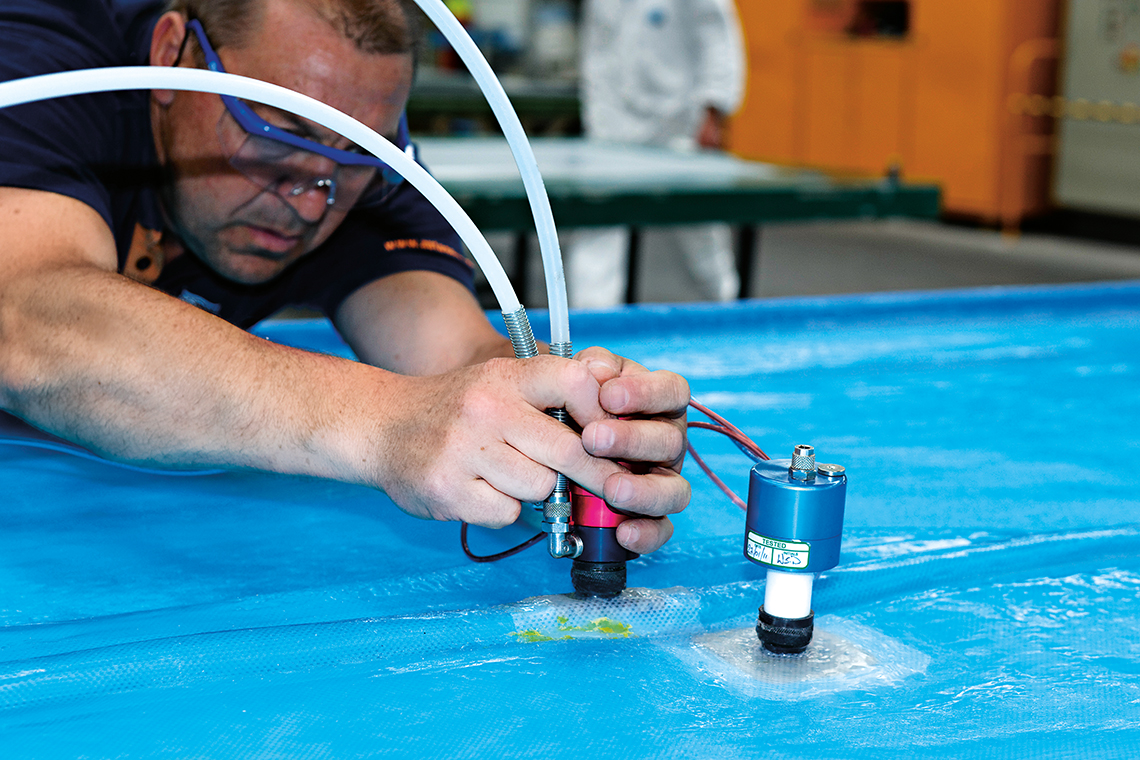 Durisotti公司员工只需五分钟即可将真空套在工件上准确定位。以前的生产工艺需要一个多小时才能完成塑料薄膜的定位和密封。