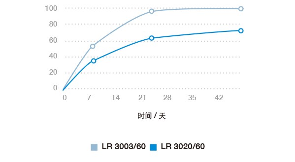 压缩形变率是压力释放后试样厚度的减少值与试样厚度的压缩值之比。如果压缩形变率低,说明材料的弹性恢复能力较强。相比之下,完全没有弹性的材料,其压缩形变率则为100%。以LASTOSIL® LR 3020/60为例:选取6毫米厚的试样,将其压缩至原有厚度的四分之三(即4.5毫米,压缩了1.5毫米);然后放入高压灭菌器,在150°C的蒸汽下存放21天。压力释放后,试样厚度为5.07毫米,减少了0.93毫米。因此,ELASTOSIL® LR 3020/60的压缩形变率为0.93毫米除以1.5毫米,结果为0.62或62%——考虑到介质负荷很高,这个值已经是非常不错了。