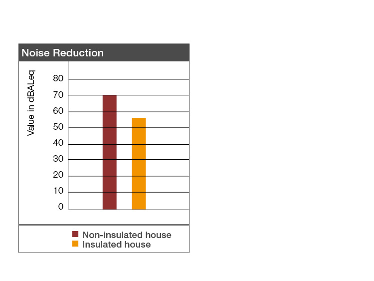 ETICS能够抑制交通等引起的外部噪声的传播。模型屋测试表明,用ETICS隔音后,噪音从70分贝降至57分贝。这乍看似乎不多,但差别其实很大。