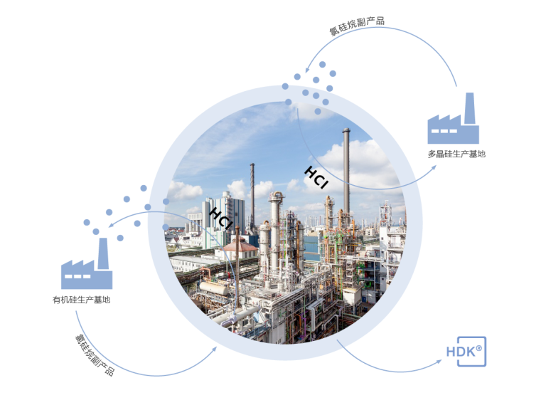 HDK® 是瓦克的一大重要优势——一体化综合生产系统的重要组成部分。一般而言,综合生产包括将某个生产环节的副产物用作其他产品的原材料。通过综合生产,可最大程度地利用副产品,形成封闭式原料循环。与开放式生产工艺相比,综合生产可降低生产成本,减少能源和资源消耗。综合生产不仅非常环保,而且以一种可持续的方式使用原料。