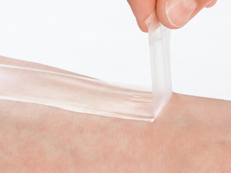 有机硅胶粘剂是透明的双组分液态即用型有机硅产品,可在室温下经铂催化加成反应,交联成柔软的凝胶状材料。这种交联而成的有机硅凝胶不仅柔韧性强,而且富有弹性。瓦克有机硅专家Gröer博士介绍说:“加上有机硅自身的表面能低,这种柔顺性便可使交联后的有机硅凝胶附着在干燥的皮肤上。而有机硅凝胶又富有弹性,能让胶粘剂层轻松移除,不会残留在皮肤表面。”