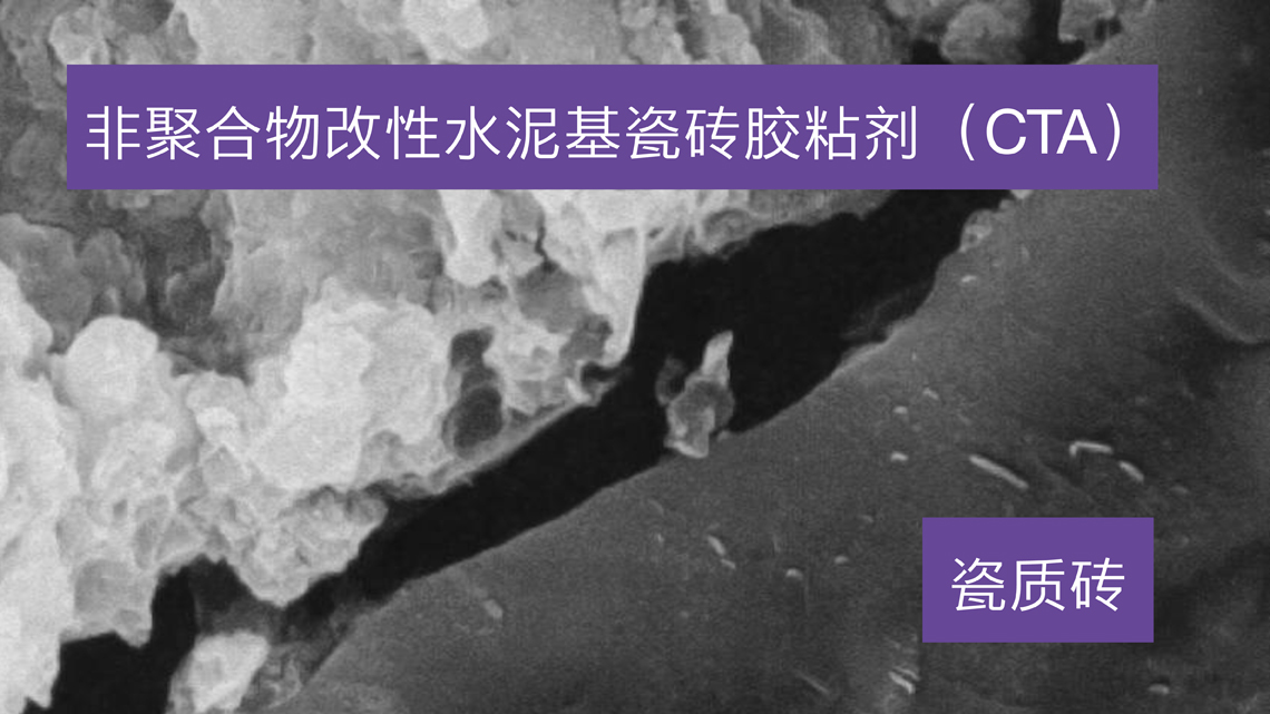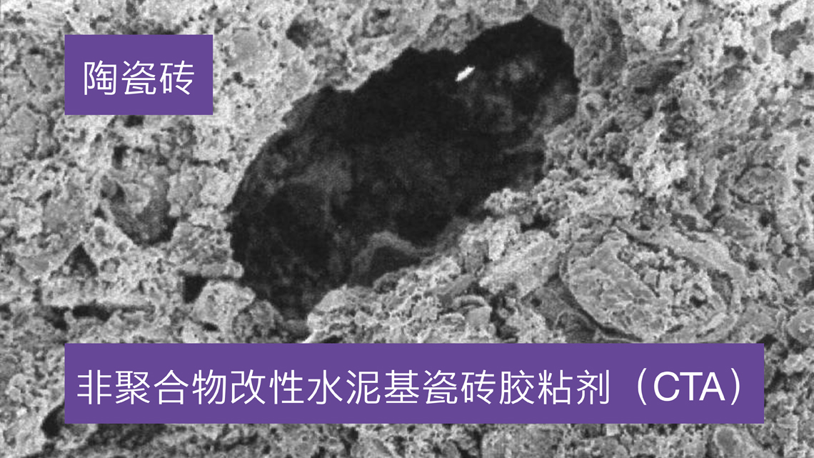 因此,吸水率的高低是区分陶瓷砖和瓷质砖的一个重要指标:传统的陶瓷砖是多孔材料,吸水率在6%以上;瓷质砖孔隙率要低得多,吸水率不到0.8%,这对以水泥、砂子和水为主要成分、且以机械方式产生粘结力的传统瓷砖胶粘剂来说是一大挑战。在粘结过程中,水泥晶体与瓷砖及基材的孔隙交错互锁。在无孔表面,这一粘结方式不再有效。