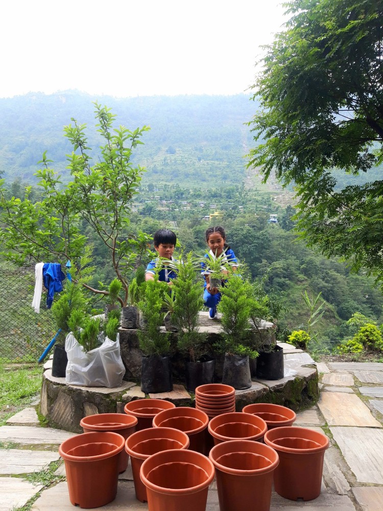 Kids with plants