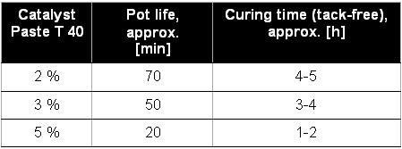 The pot life is the period of time at 23 °C / 50 % rel. humidity during which the catalyzed mix can be applied.